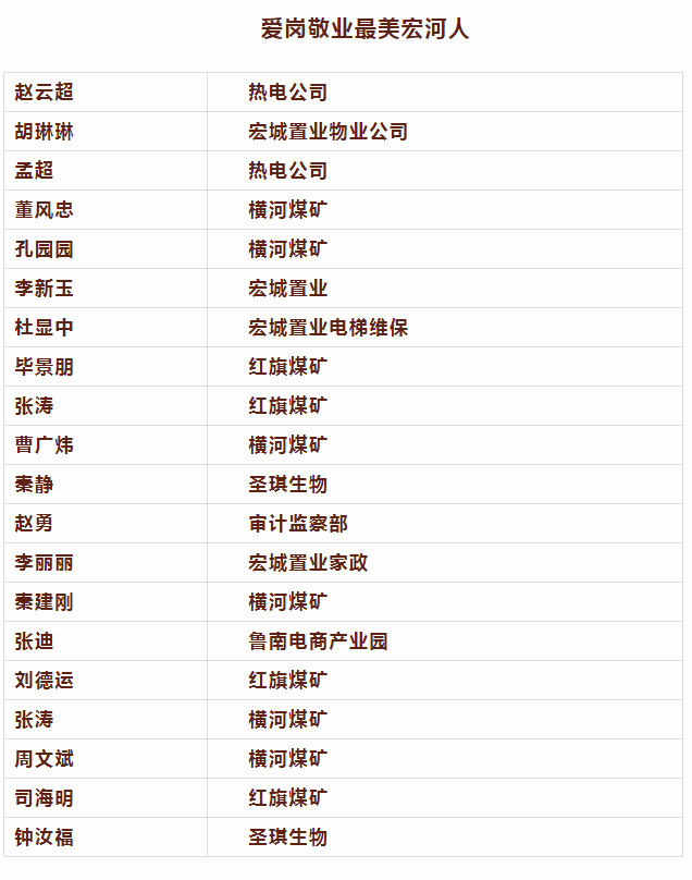 【公示】“愛崗敬業(yè)最美宏河人“推薦評選結果出爐啦! |
